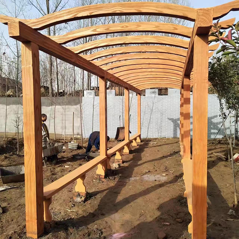 在景观设计中,景观产品往往成为整个园林的一大亮点。园林景观中的防腐木廊架可以使整个园林空间丰富多变。它可以作为人们在室内行走的向导;也可供游人休息、赏景、乘凉、避雨;同时,它还可以划分空间,是组织景区各类空间的重要手段...